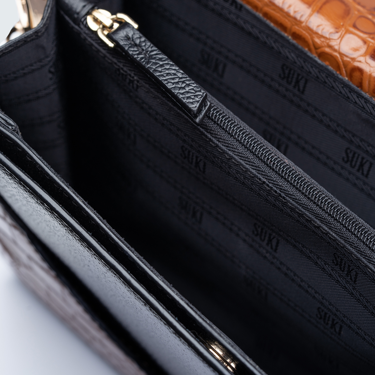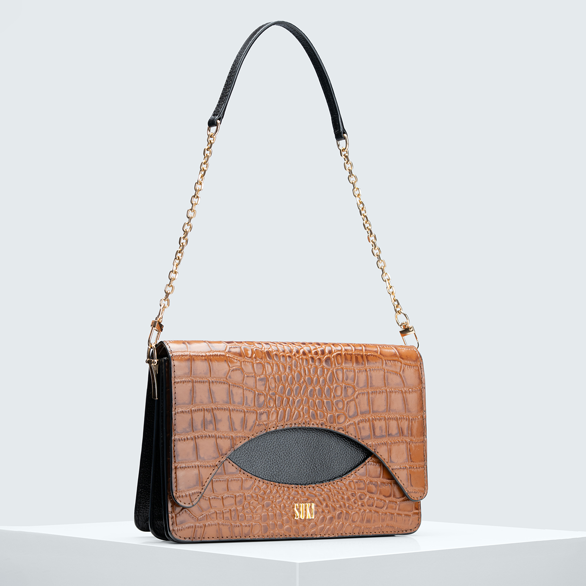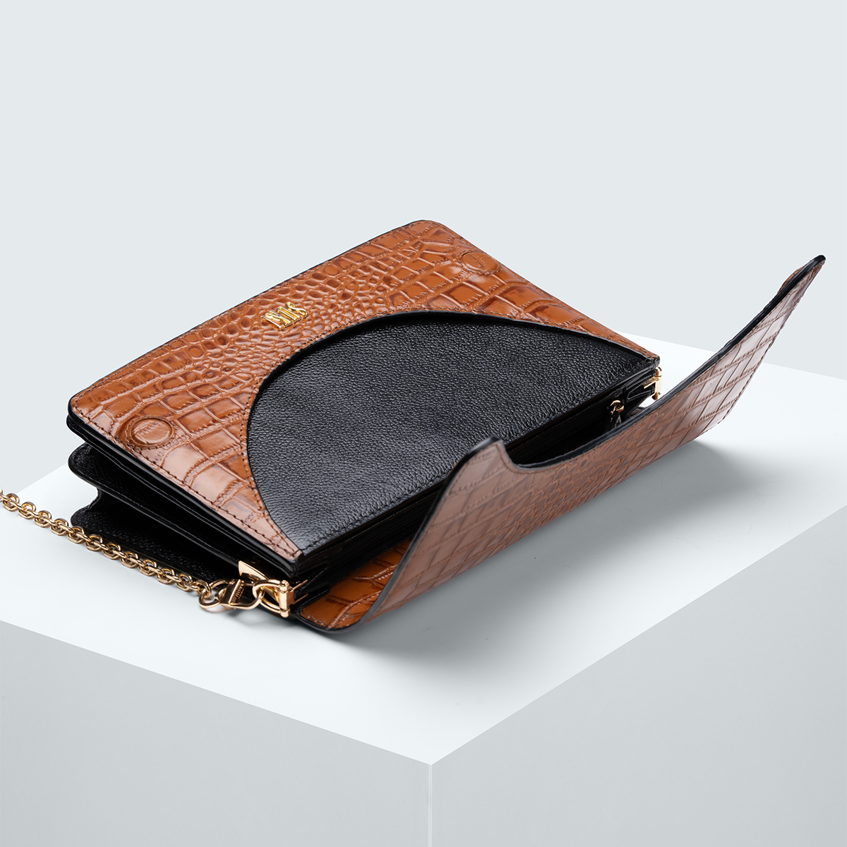 Slide your hand through the flap to carry it steady, sleek, and subtly bold.