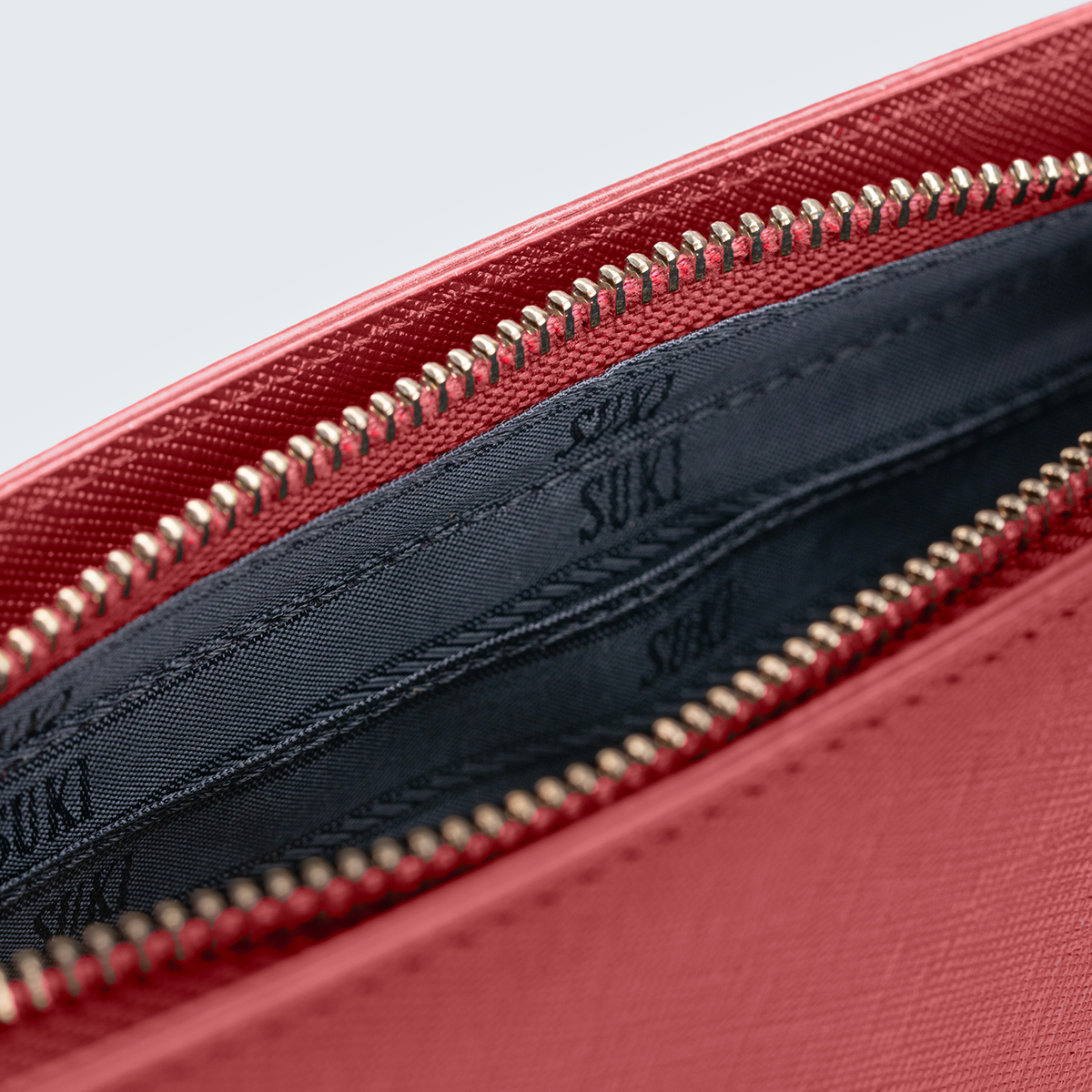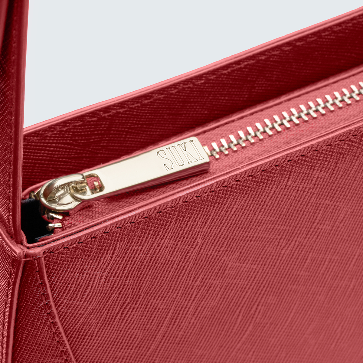 A firm, full-length zip with tonal hardware keeps your essentials quietly sealed.